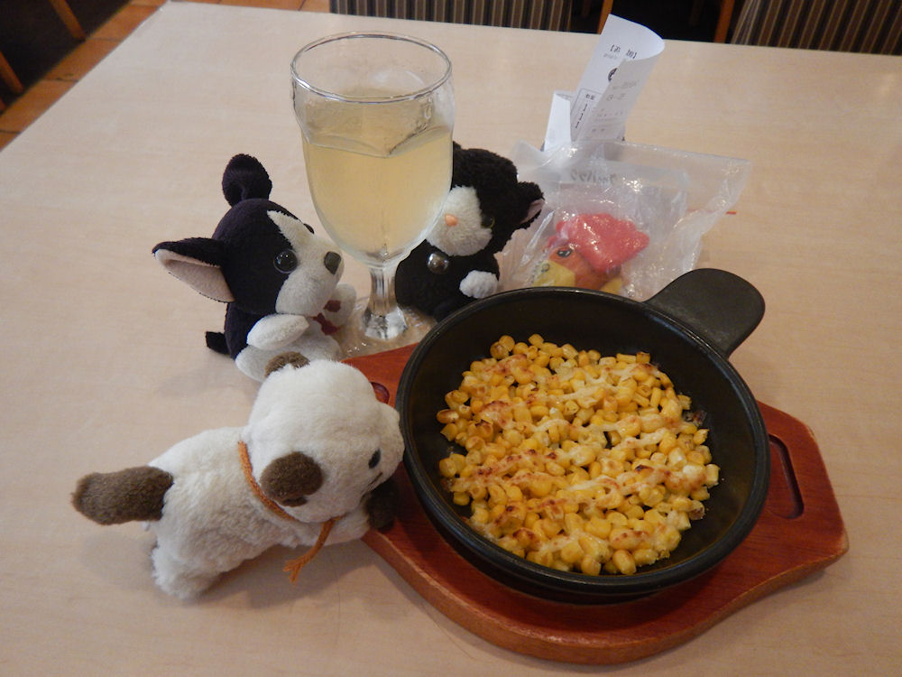 ガストのコーンのオーブン焼きは、白ワインにも合うよ。