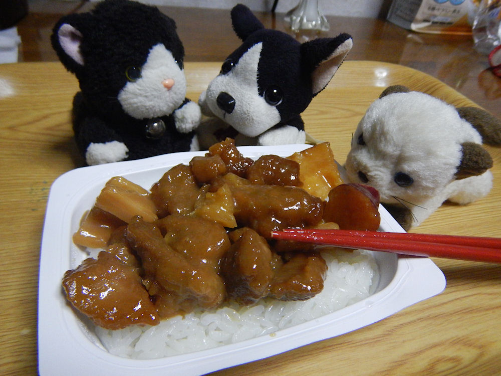パックご飯のご飯って、プラスチックと言うか容器の臭いが染み込んで、変な臭いで美味しくないけど、酢豚のタレが染み込んだ、ご飯が一番美味しかった。
