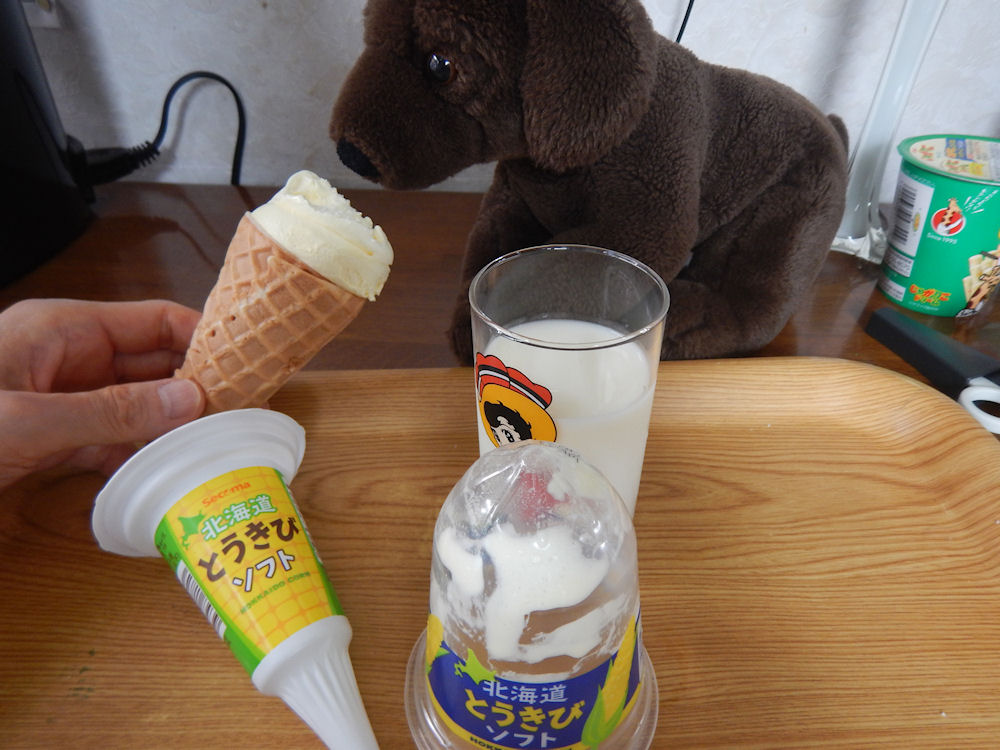 牛乳と、とうきびアイスクリーム。まるで北海道旅行の気分!!