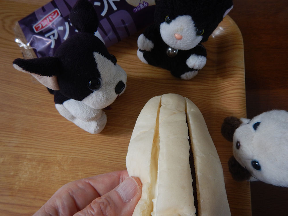 よく見ると、白いパンの切れ目には、黒っぽい粒あんと、白っぽいチーズクリームがサンドしている。