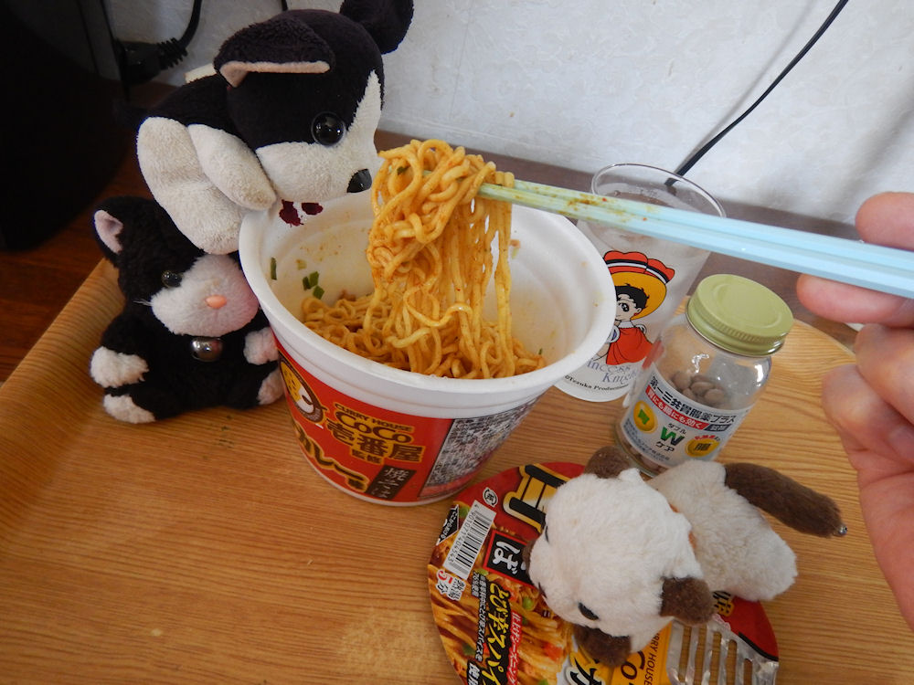 この「麺ほぐし油」というのは、日清食品のカップ焼きそば「UFO」には無い。エースコックの、辛旨ポークカレー味焼そばは太麺なので、ほぐし油が必要なのでしょう。