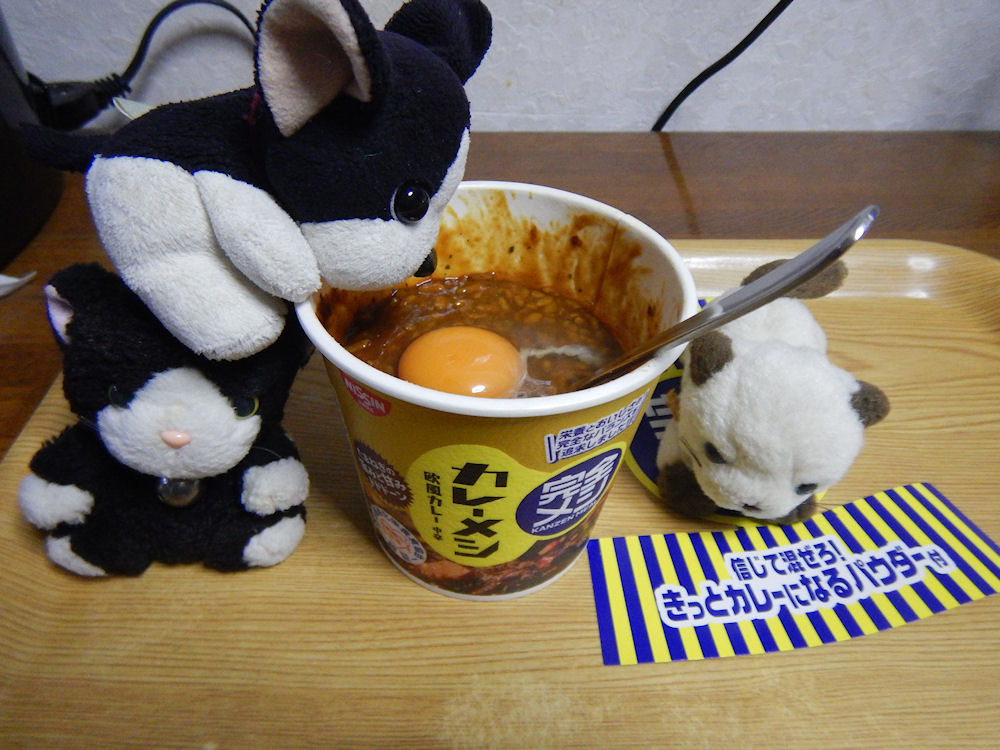 信じろ!日清食品、完全メシ・カレーメシに生卵を入れたら美味しい