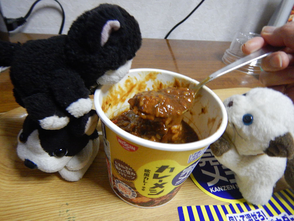 5分、たったら、仕上げオイルを入れる。そして完全謎パウダーを入れたら、カップの中は、カレー粉の山盛り。