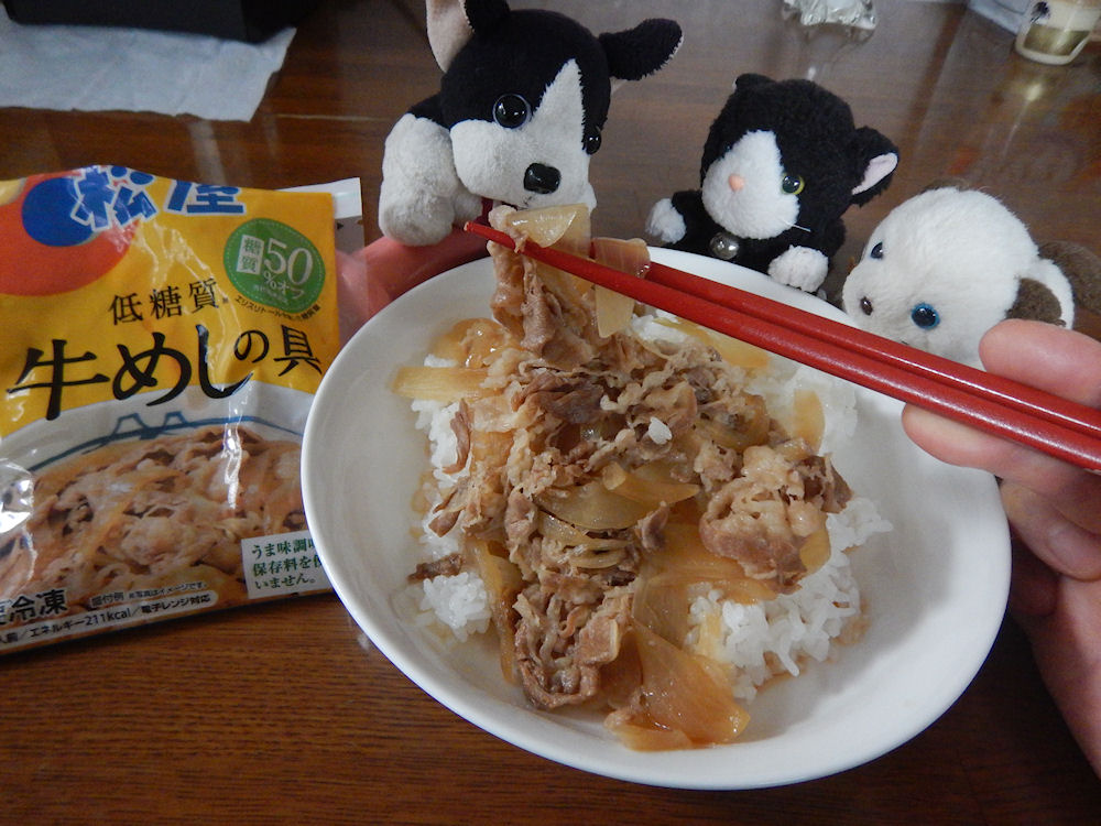 松屋には、冷凍食品限定で、糖質50%オフの牛めしがある。