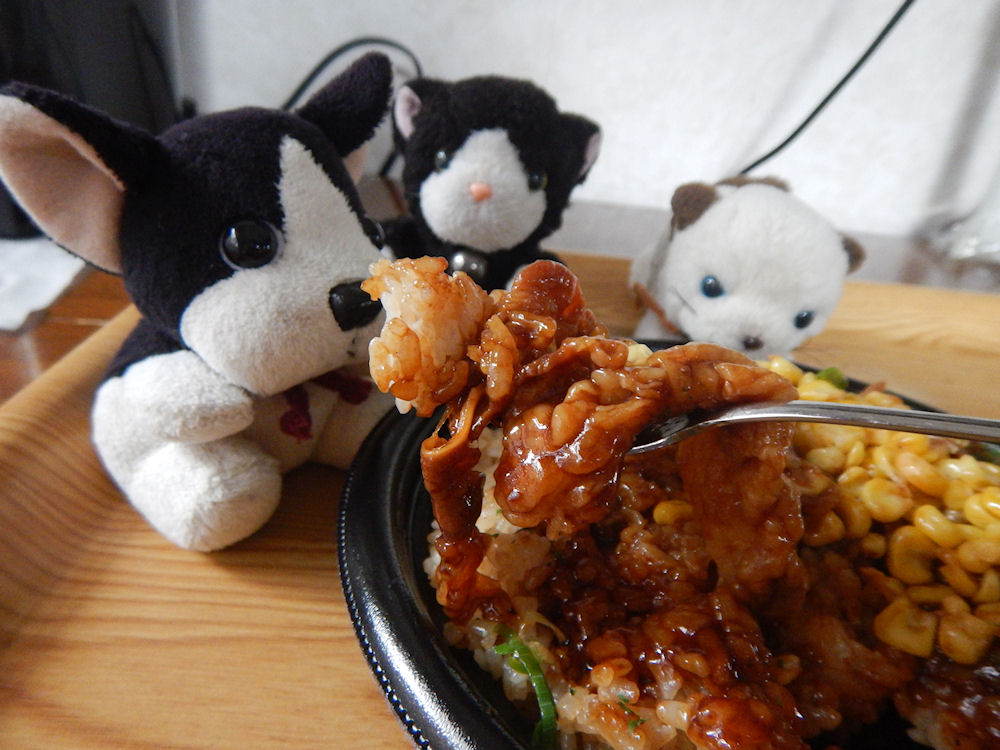 食べてみると、とろ~り甘辛い牛カルビと、プチプチしたコーンが美味しい。